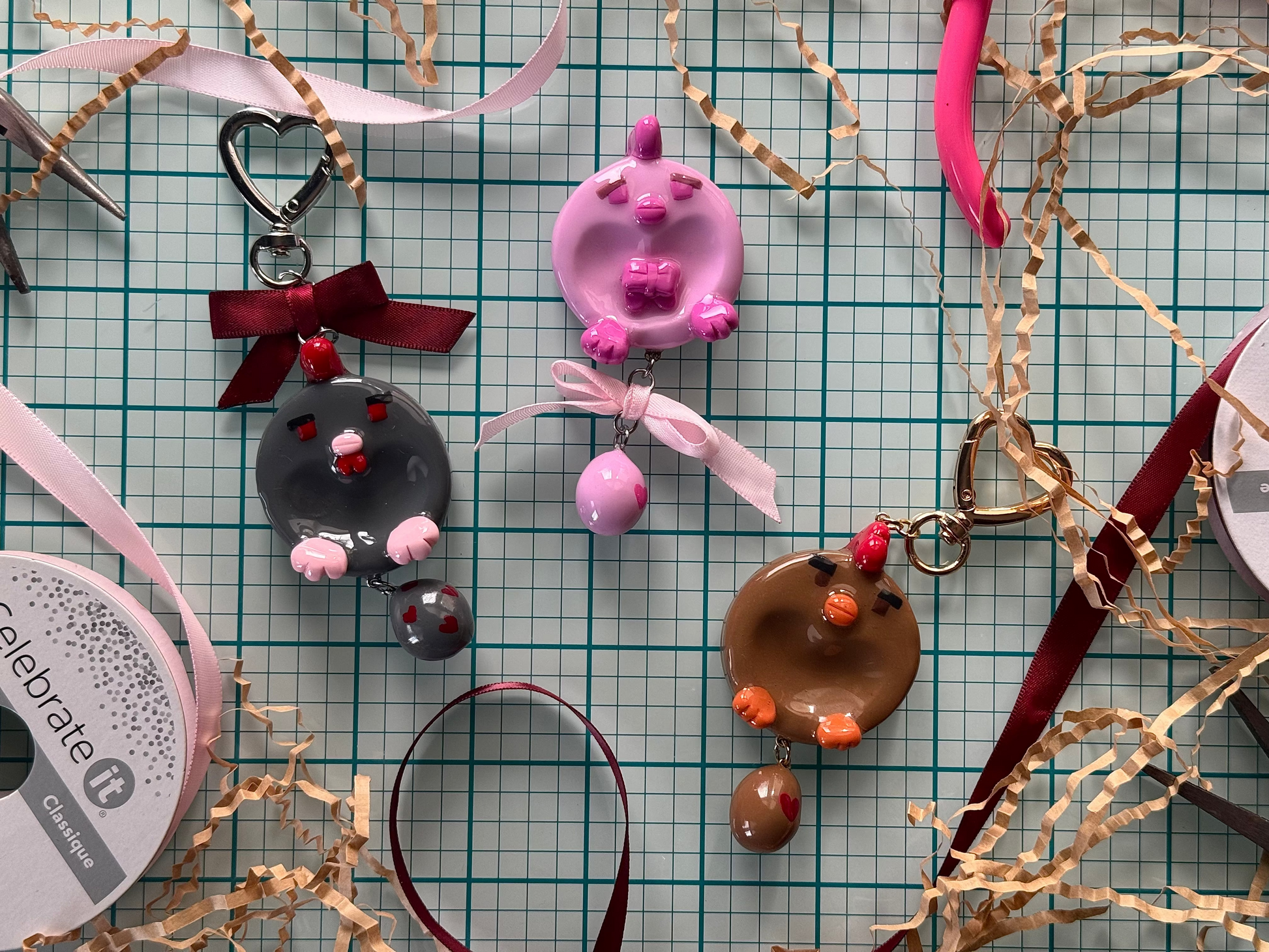 Keychain without ribbon is approx. 4" in length.