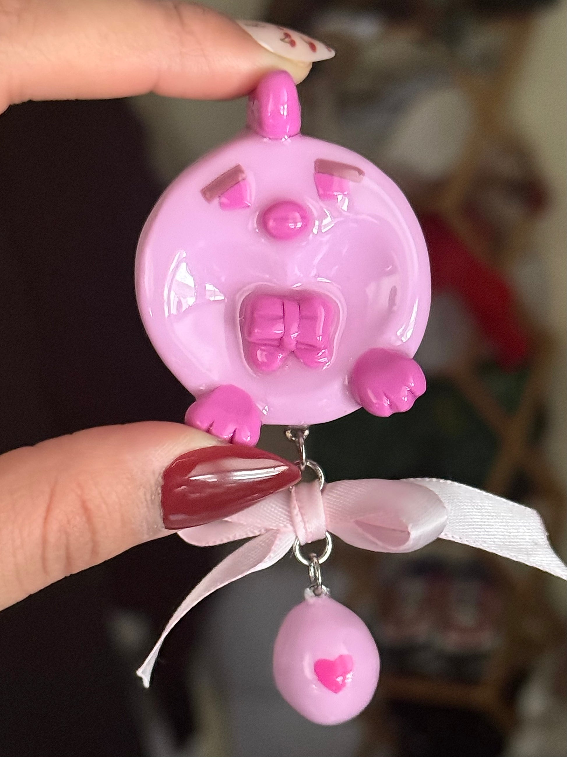 Dimensions: Pinky will come with silver metal findings and can be accessorized with a pink satin ribbon.